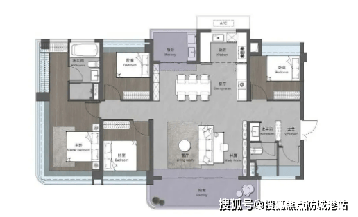 :户型最大亮点为大面积入户花圃!适配刚需至改善各类家庭需求!届时从项目出发6坐可中转白鹅潭CBD,